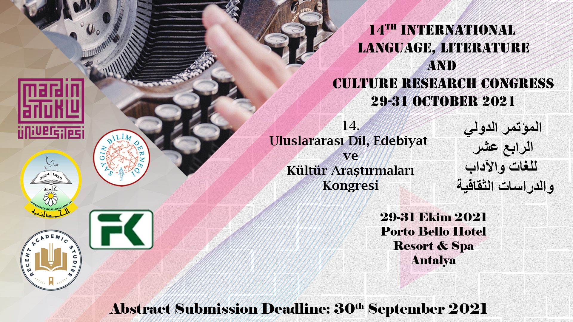 14. Uluslararası Dil, Kültür ve Edebiyat Araştırmaları Kongresine sadece sözel bildiri veya özel konulu çalıştay ile iştirak etmek mümkündür.